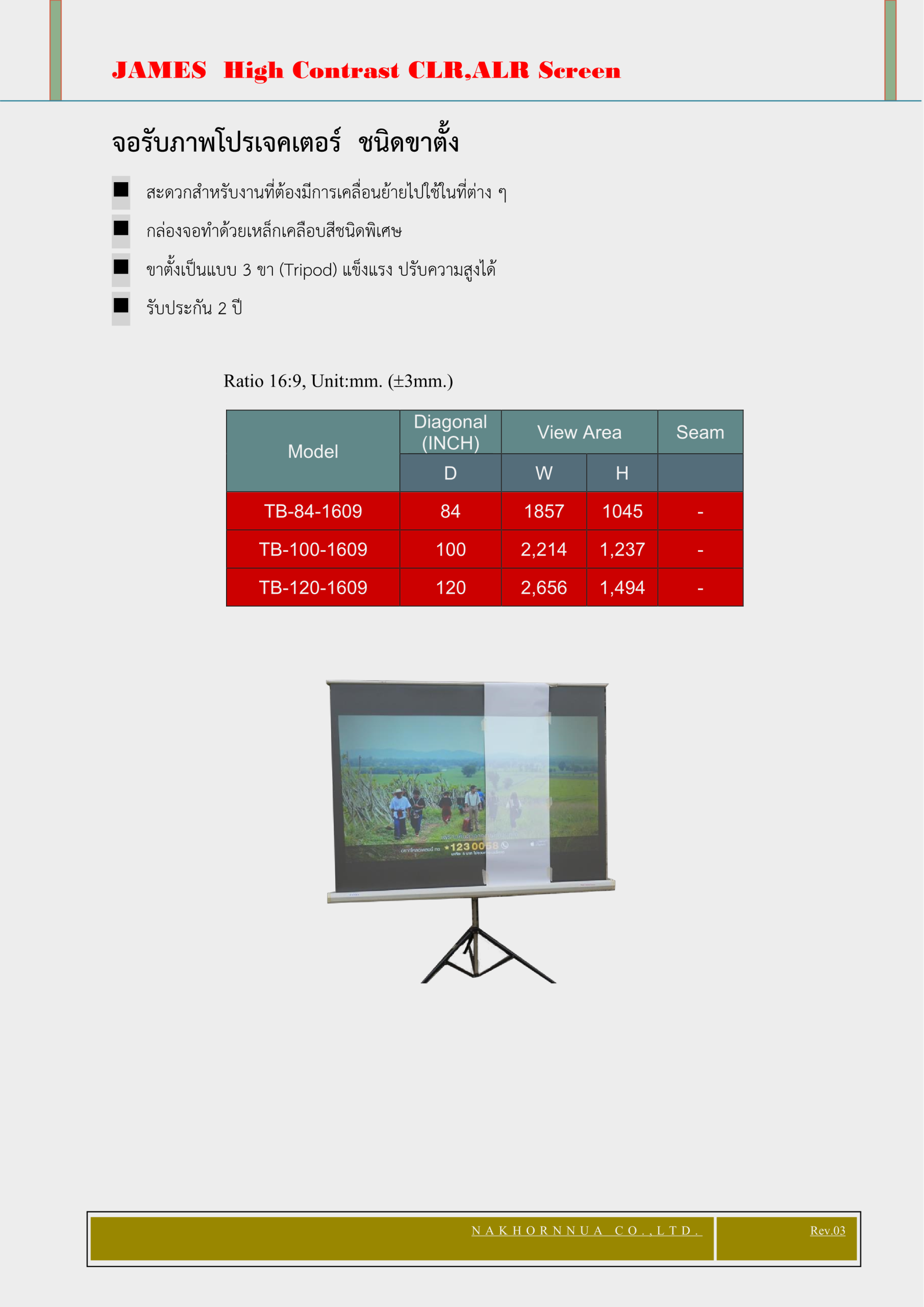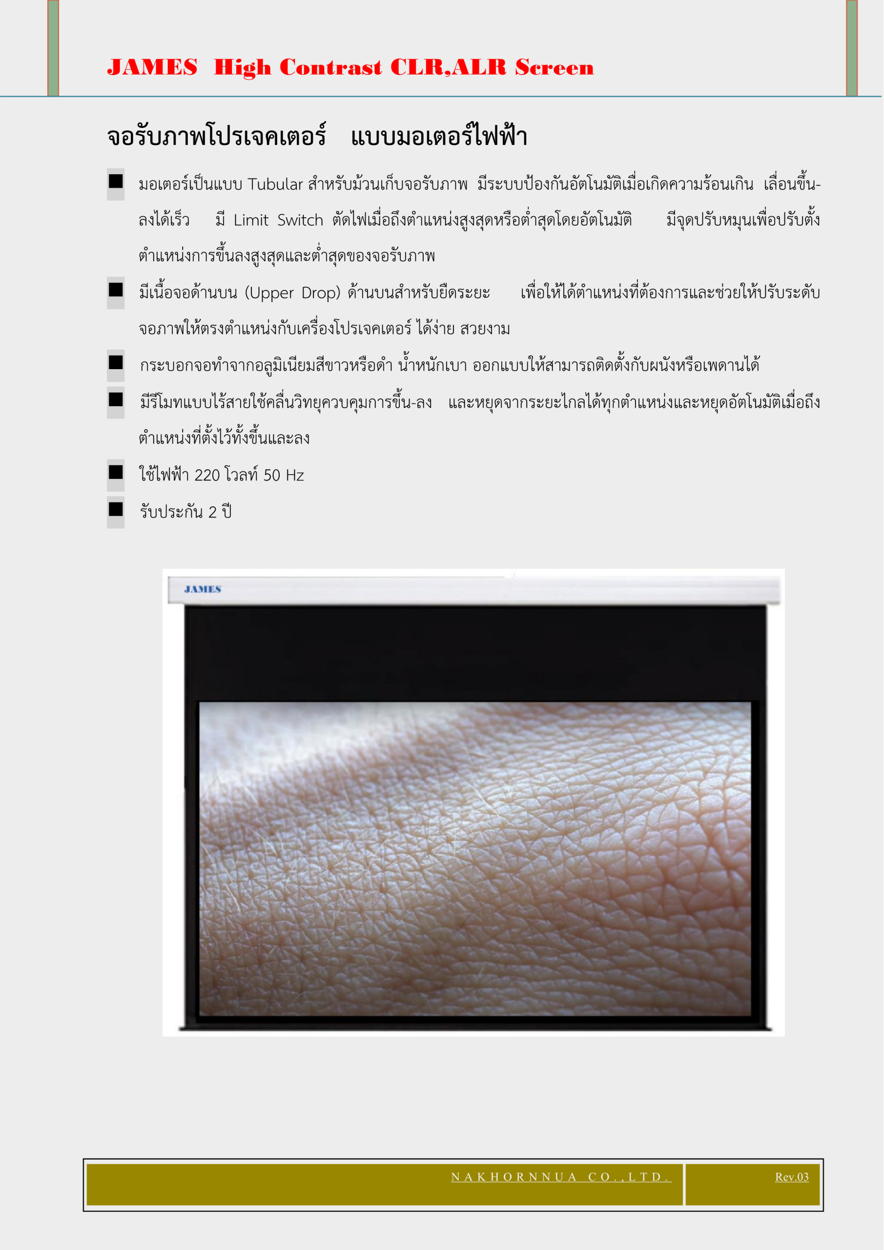 จอรับภาพแบบมอเตอร์ ความสว่างสูง Gain 5 "JAMES" ,100,120,130 นิ้ว,16:9